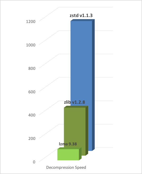 Zstd can also offer stronger compression ratios at the cost of compression speed. Speed vs Compression trade-off is configurable by small increments. Decompression speed is preserved and remains roughly the same at all settings, a property shared by most LZ compression algorithms, such as zlib or lzma.